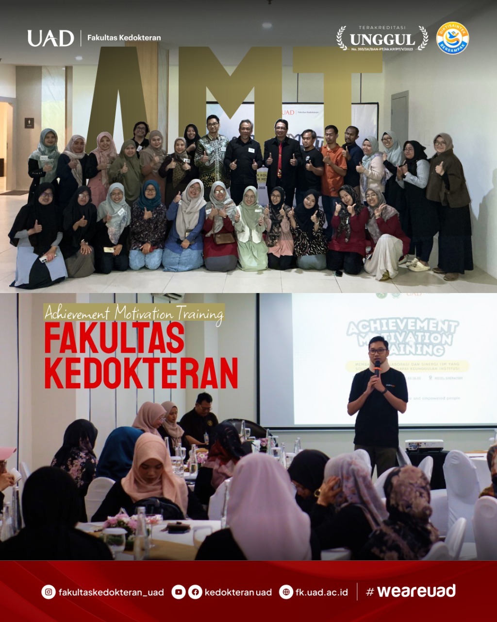 Fakultas Kedokteran Universitas Ahmad Dahlan Yogyakarta menggelar Achievement Motivation Training (AMT) dengan tema “Bersama dalam Ukhuwah Membangun Sinergi untuk Sukses Bersama” pada Sabtu 28 September 2025, di Hotel Sheraton Mustika Yogyakarta. Kegiatan ini diikuti oleh dosen dan tenaga kependidikan Fakultas Kedokteran UAD dan terlaksana berkat kerjasama dengan Tim Taragak Diri Indonesia.
